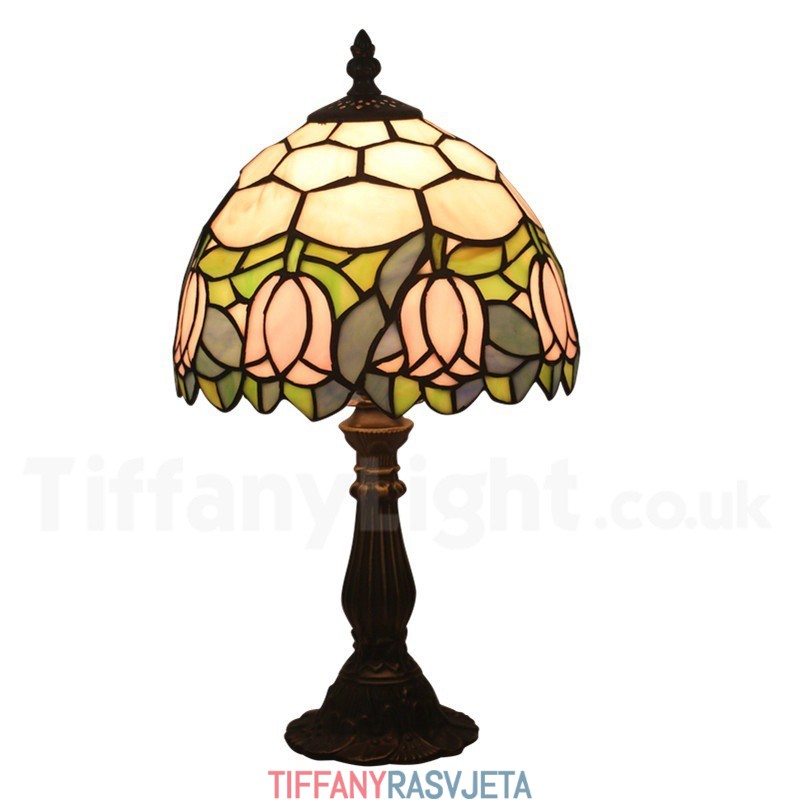 Ručno izrađena vintage stolna lampa Tiffany u stilu vitraja od 8 inča u stilu tulipana