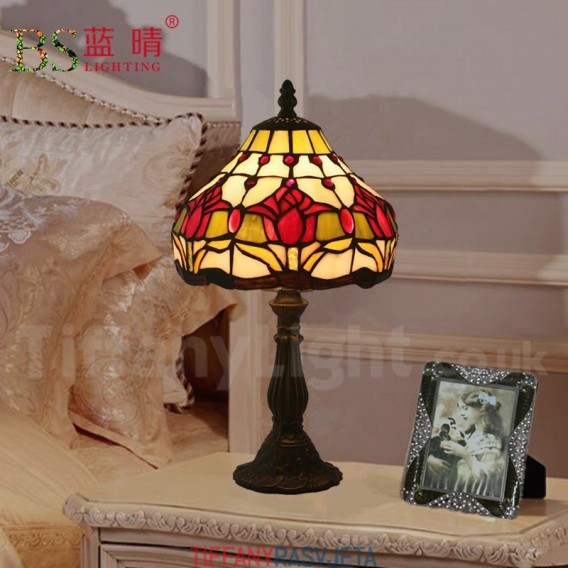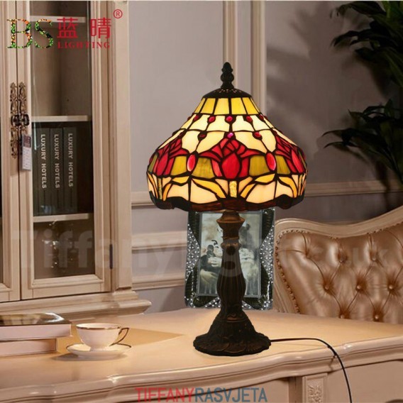 Ručno izrađena vintage stolna lampa Tiffany u stilu vitraja od 8 inča u stilu tulipana
