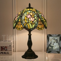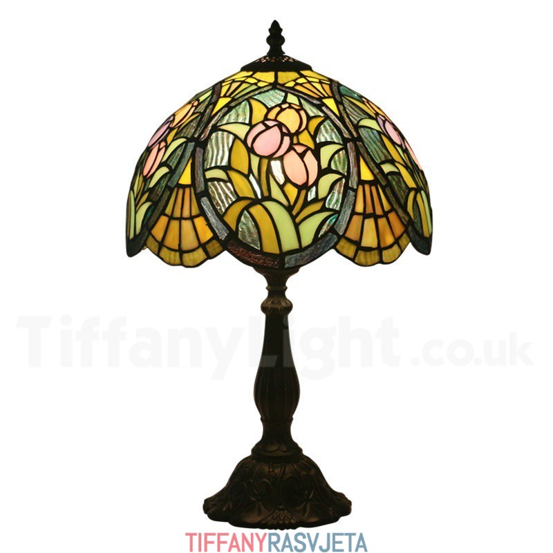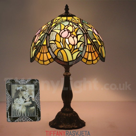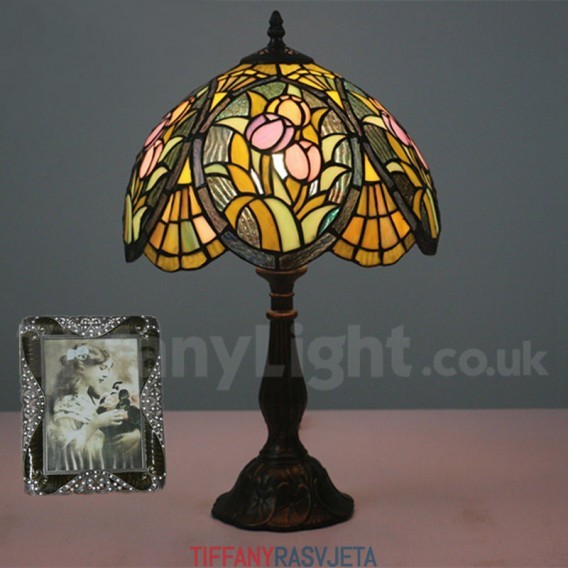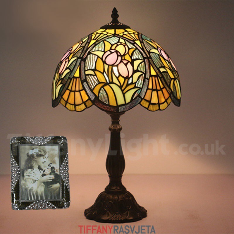 Ručno izrađena vintage 30 cm Tiffany stolna lampa u stilu vitraja s motivom tulipana