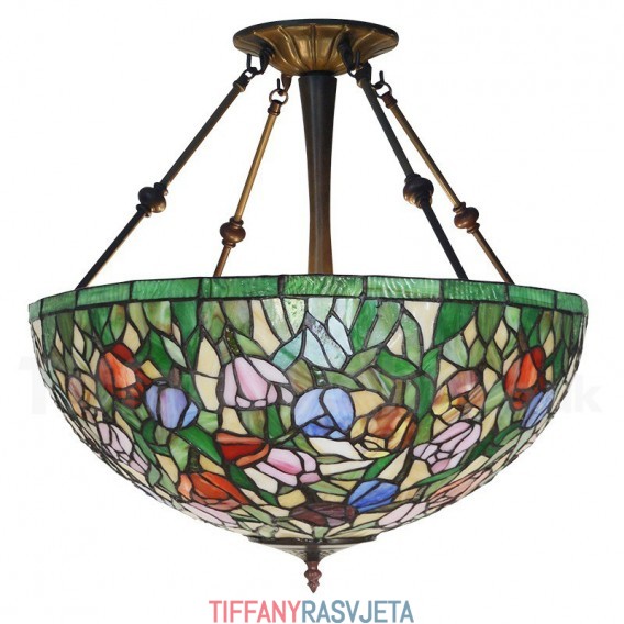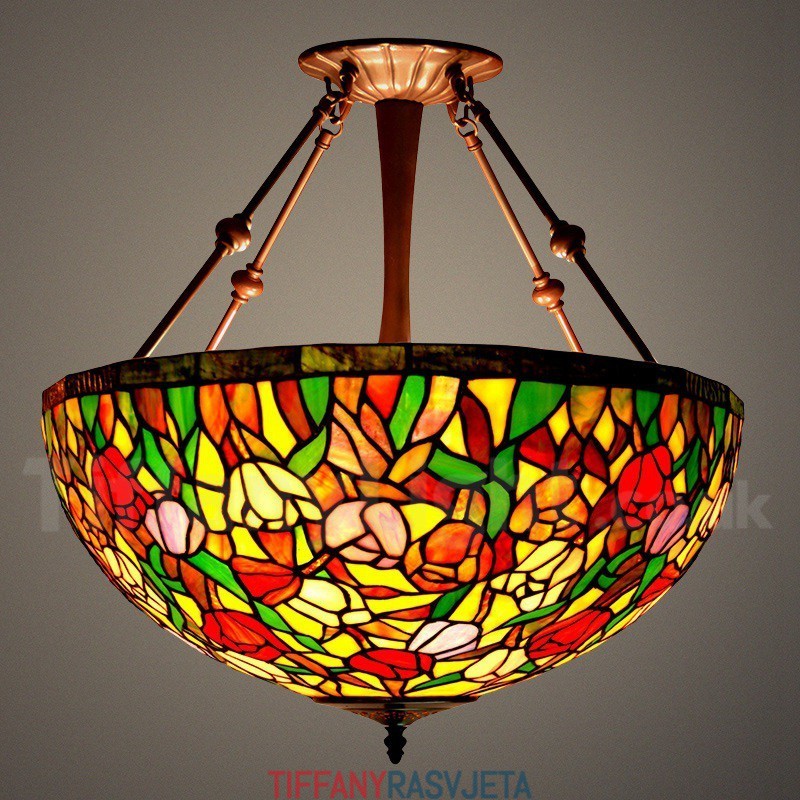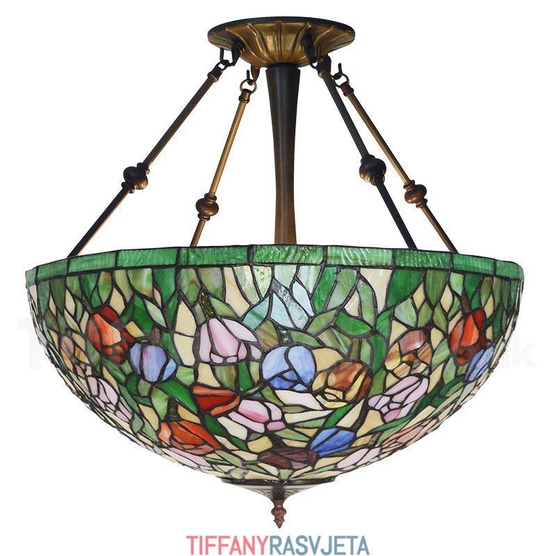 Ručno izrađena vintage 20-inčna Tiffany viseća svjetiljka s tulipanima