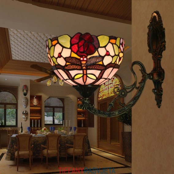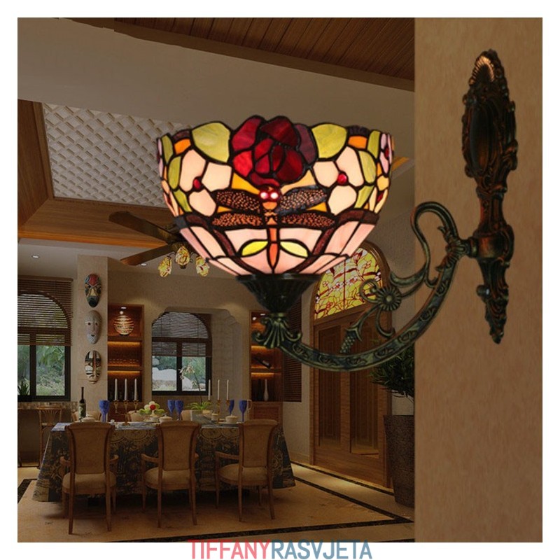 Ručno izrađena vintage zidna svjetiljka Tiffany u stilu vitraja od 8 inča u stilu vretenca