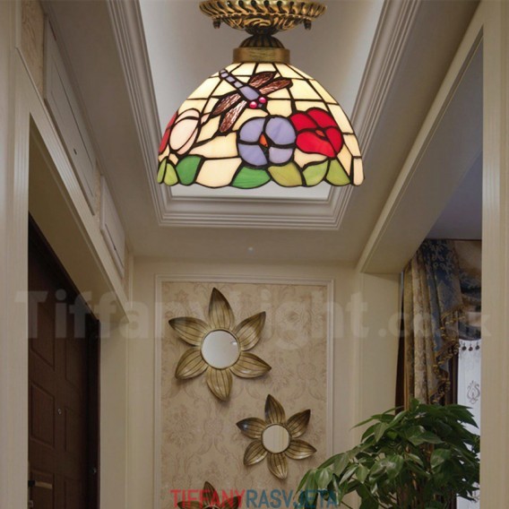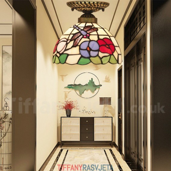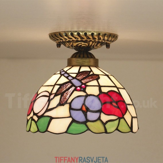 Ručno izrađena vintage ugradbena svjetiljka Tiffany u stilu vitraja od 8 inča, u stilu vretenca