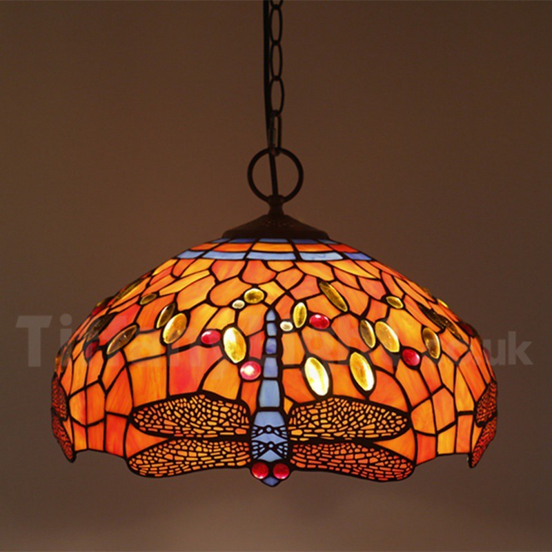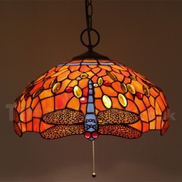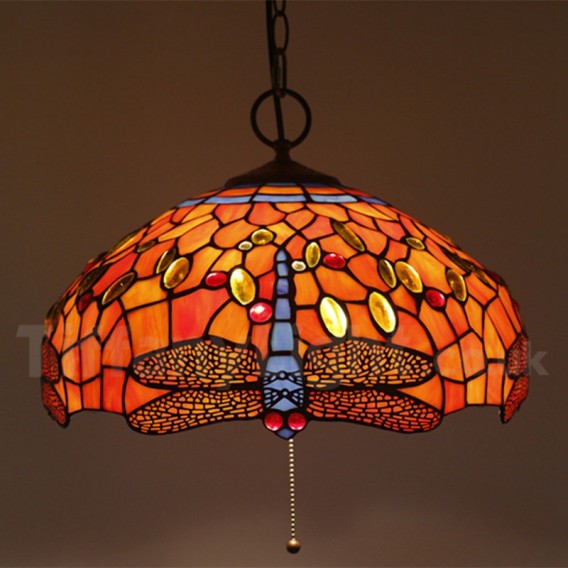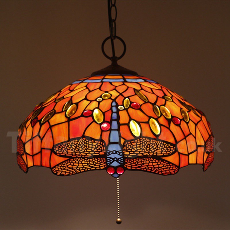 Ručno izrađena vintage 16-inčna viseća svjetiljka Tiffany u stilu vitraja s motivom vretenca