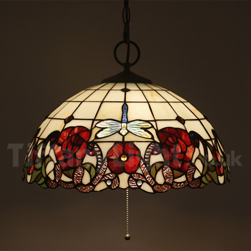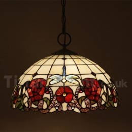 Ručno izrađena vintage 16-inčna viseća svjetiljka Tiffany u stilu vitraja s motivom vretenca