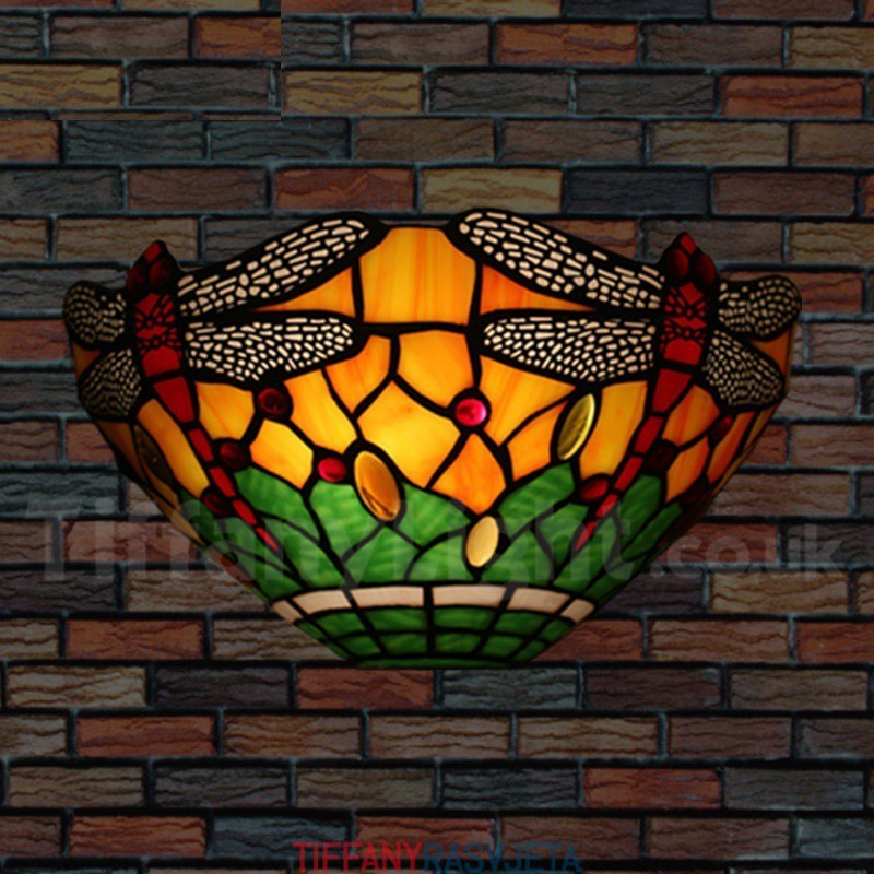 Ručno izrađena vintage 11-inčna retro vitražna Tiffany zidna svjetiljka u stilu vretenca