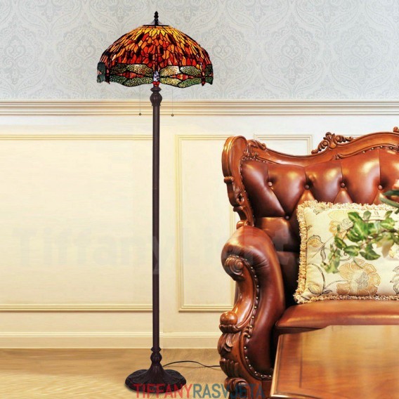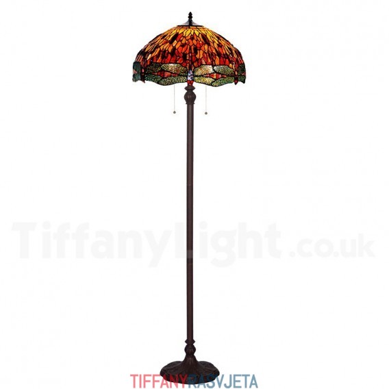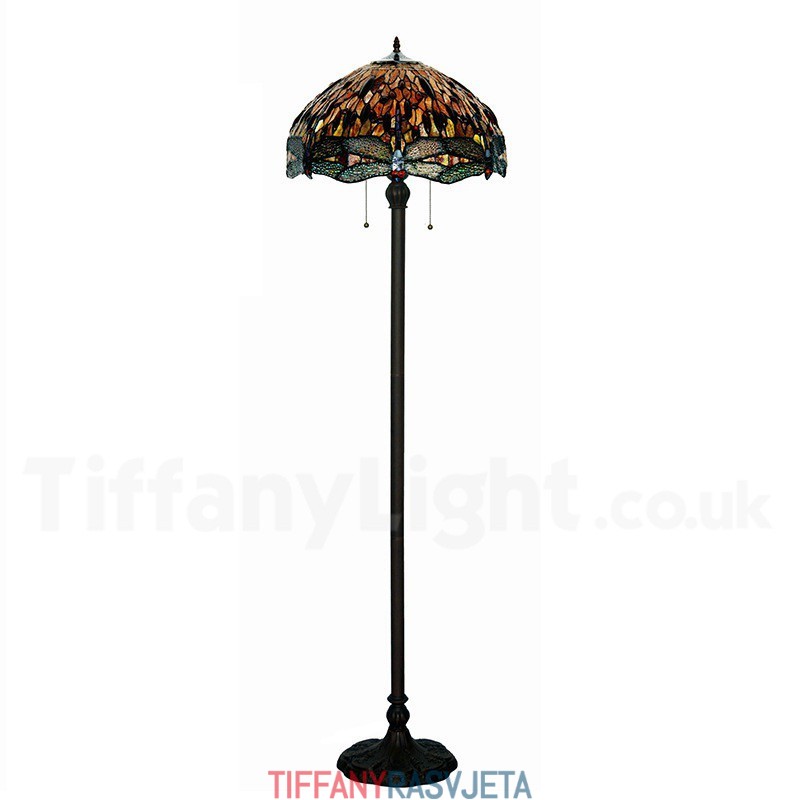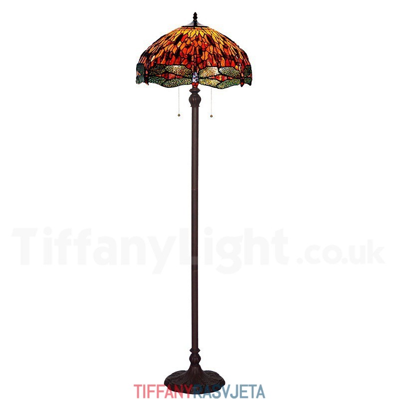 Ručno izrađena vintage podna lampa Tiffany s motivom vretenca od 18 inča