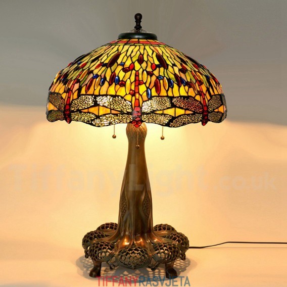 Ručno izrađena vintage Tiffany stolna lampa s motivom vretenca od 20 inča