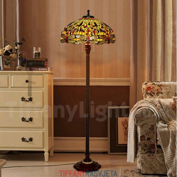Ručno izrađena vintage podna lampa Tiffany s motivom vretenca od 20 inča