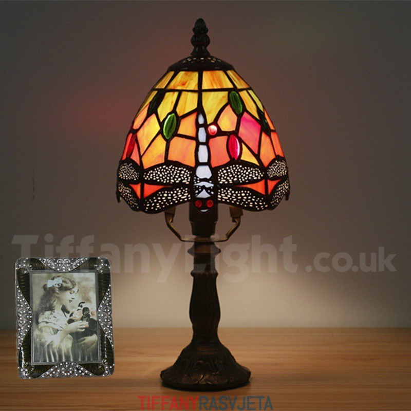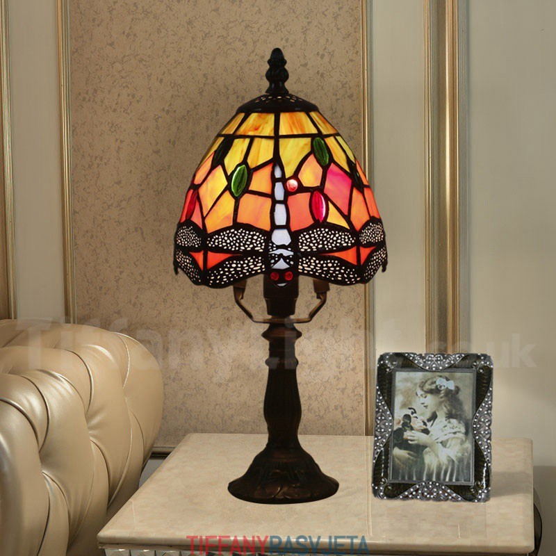 Ručno izrađena vintage stolna lampa Tiffany u stilu vitraja od 6 inča, u stilu vretenca