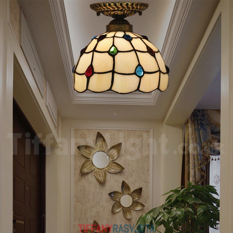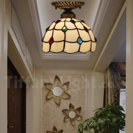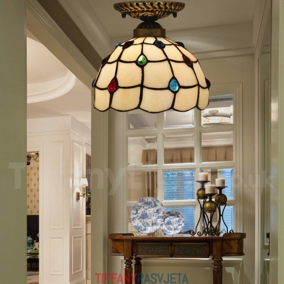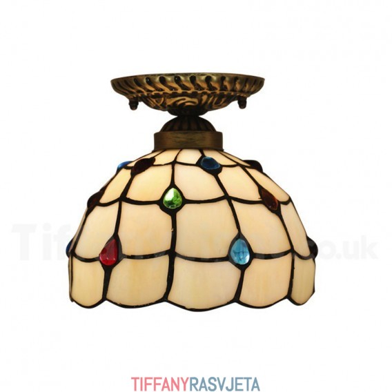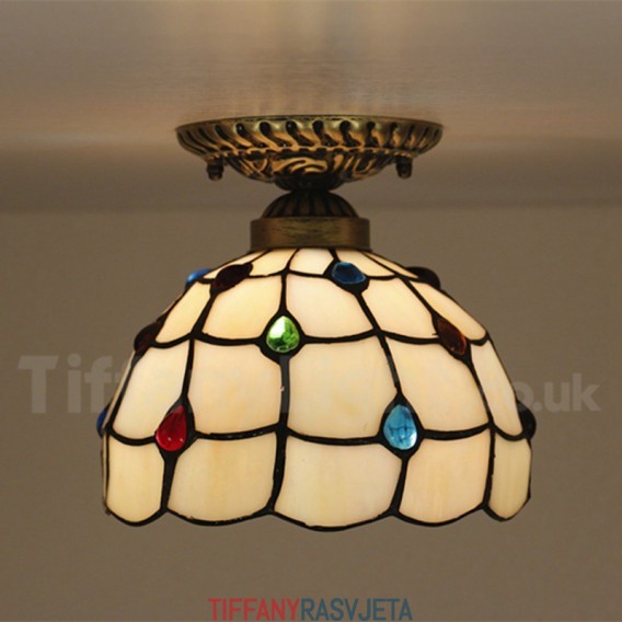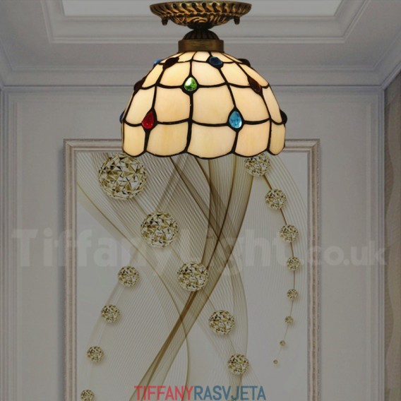 Ručno izrađena vintage američka jednostavna vitražna Tiffany ugradbena svjetiljka od 8 inča