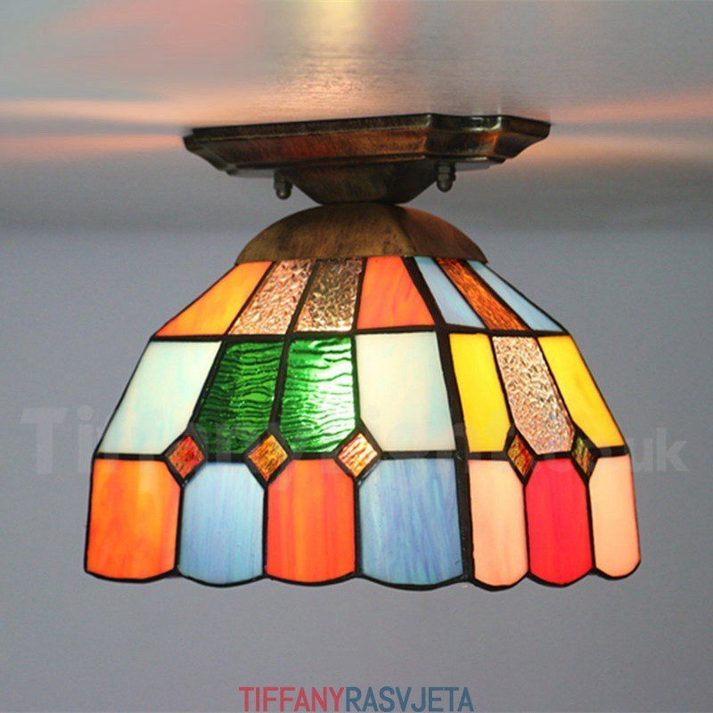 Ručno izrađena vintage ugradbena Tiffany svjetiljka od vitraja od 8 inča