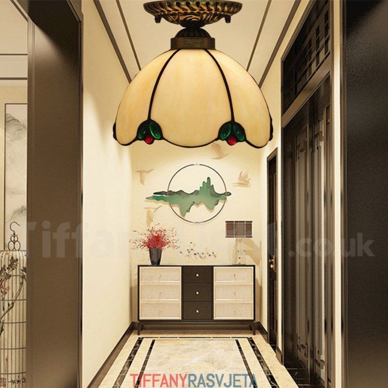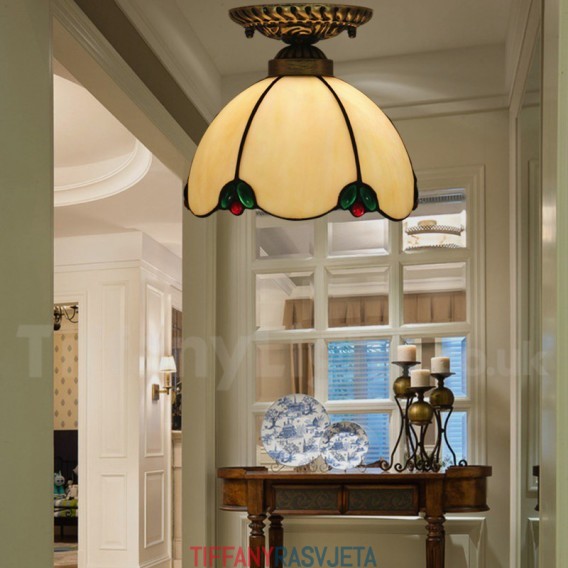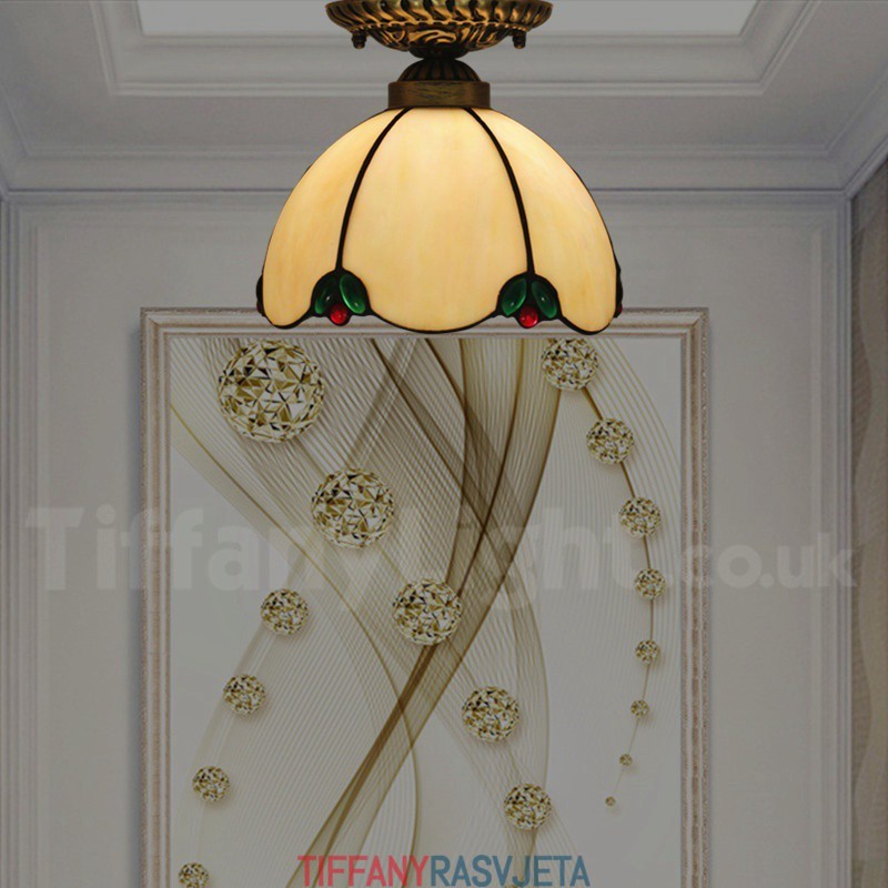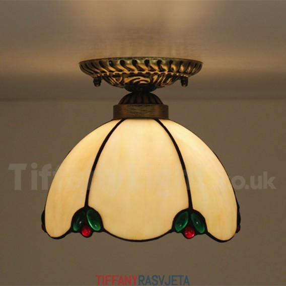 Ručno izrađena vintage američka jednostavna vitražna Tiffany ugradbena svjetiljka od 8 inča