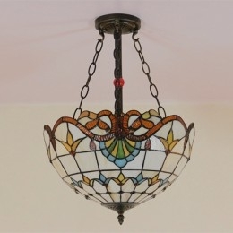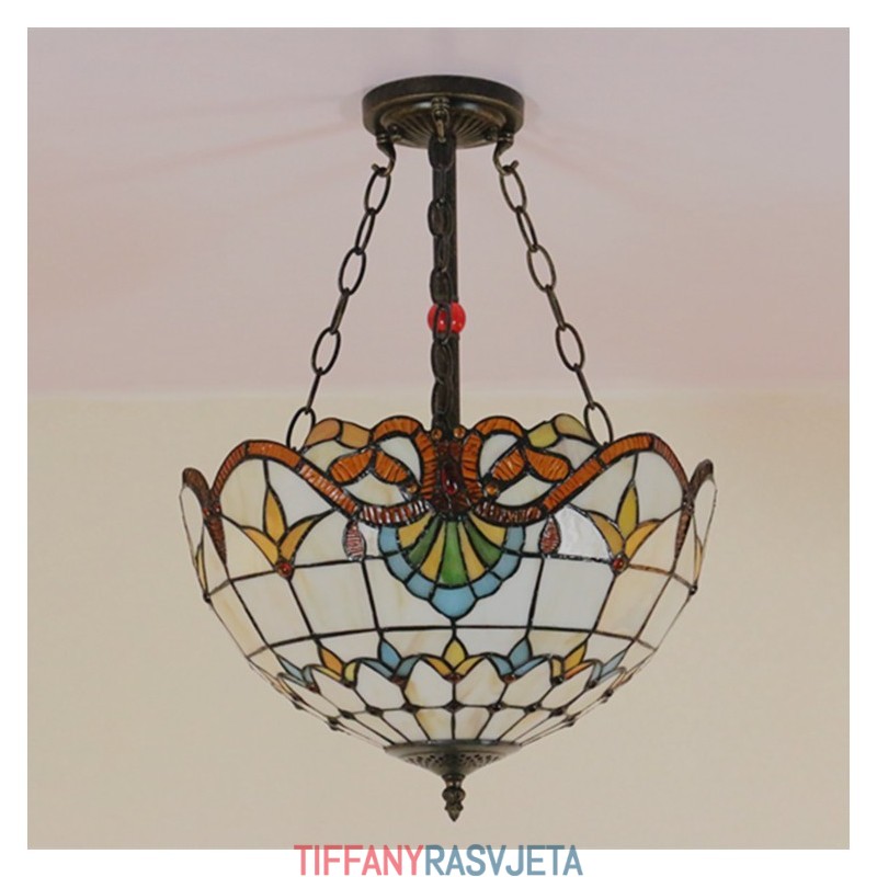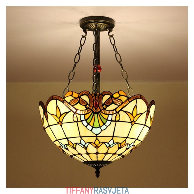 Ručno izrađena vintage barokna 16-inčna ugradbena Tiffany svjetiljka od vitraja
