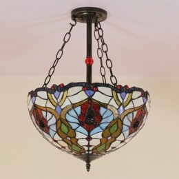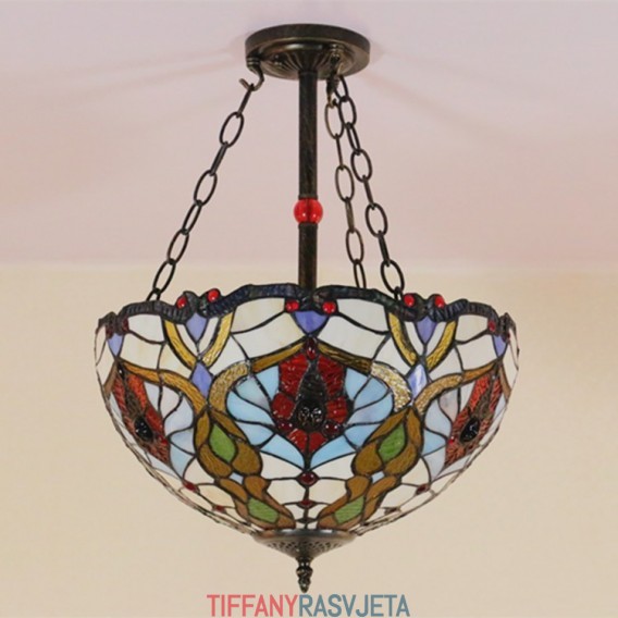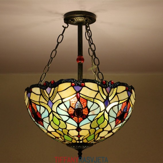 Ručno izrađena vintage 16-inčna ugradbena Tiffany svjetiljka od vitraja