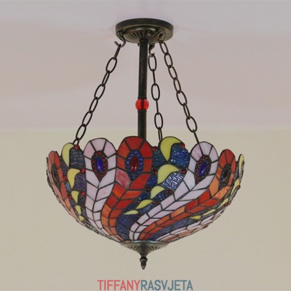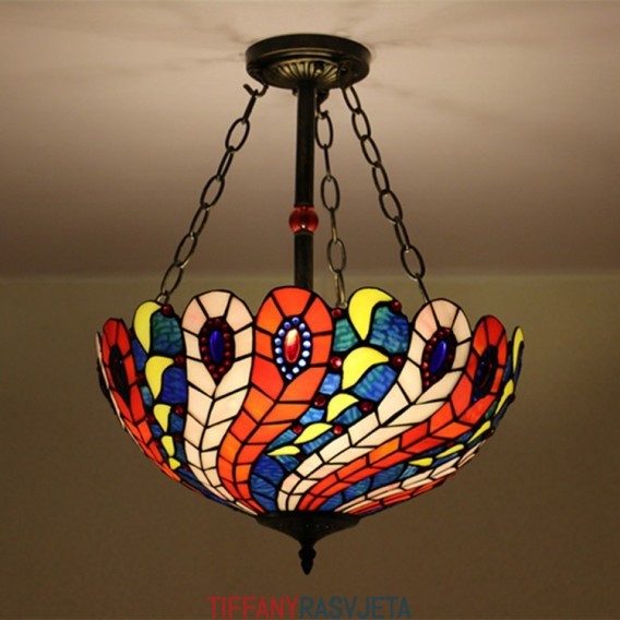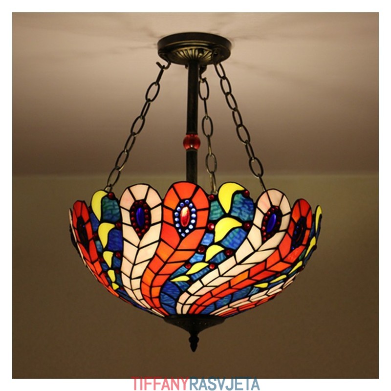 Ručno izrađena vintage ugradbena svjetiljka od vitraja Peacock, 16 inča