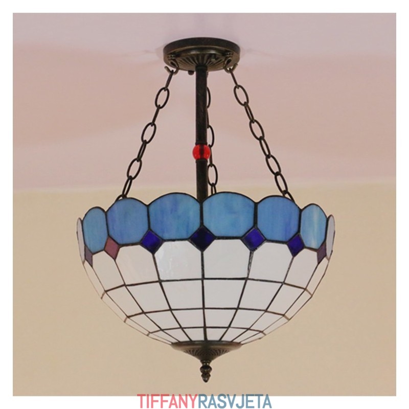 Ručno izrađena vintage 16-inčna ugradbena Tiffany svjetiljka od vitraja