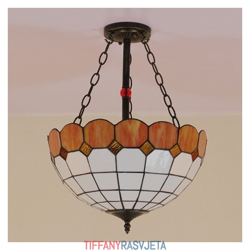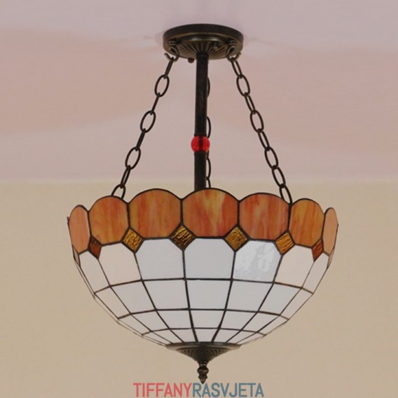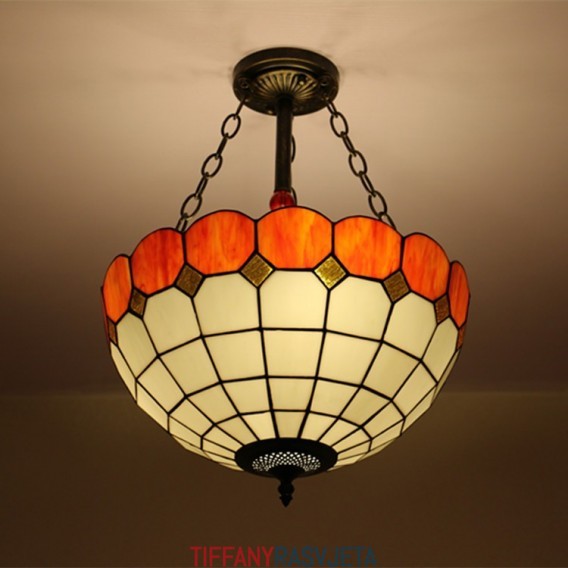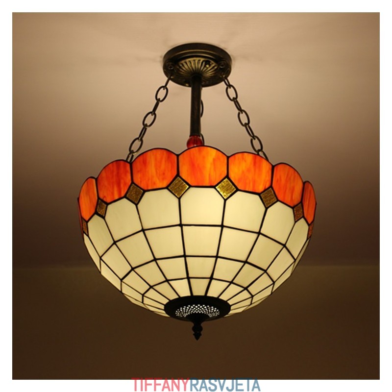 Ručno izrađena vintage 16-inčna ugradbena Tiffany svjetiljka od vitraja