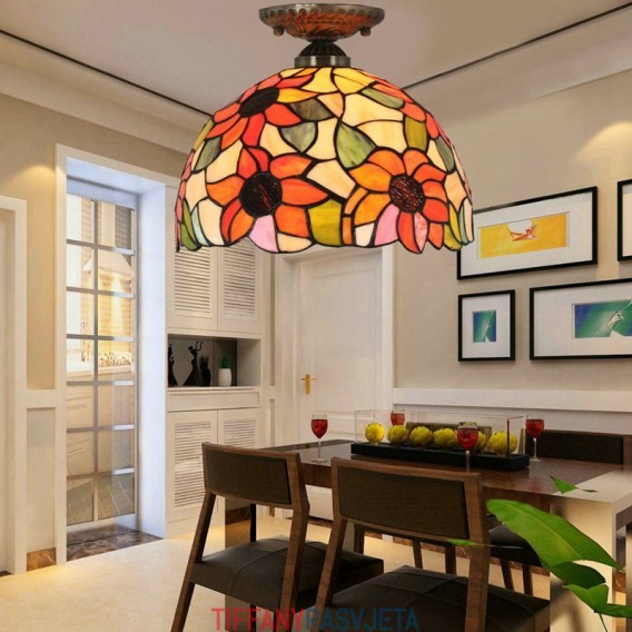 Ručno izrađene vintage pastoralne retro Tiffany ugradbene svjetiljke od 12 inča s uzorkom suncokreta