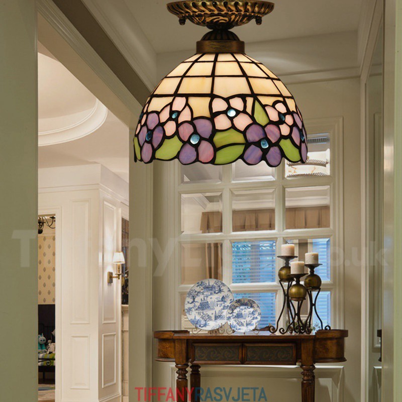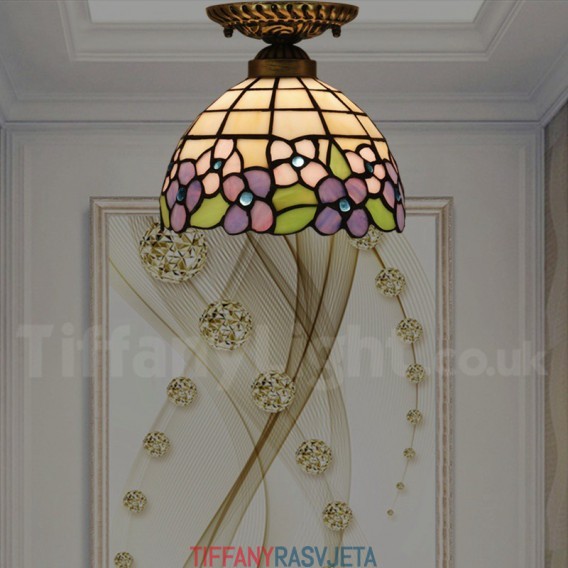 Ručno izrađena vintage ugradbena Tiffany svjetiljka od vitraja od 8 inča