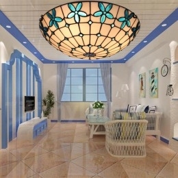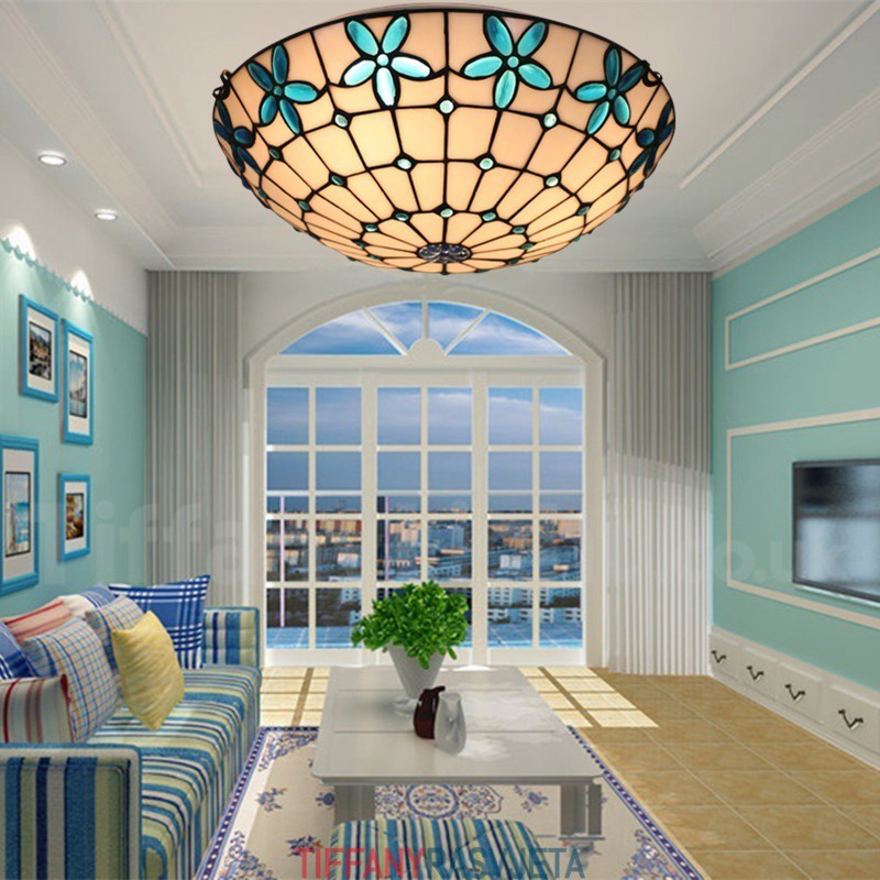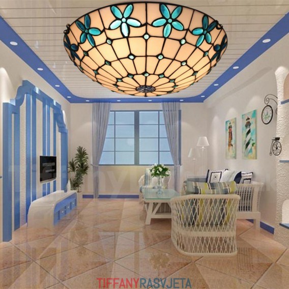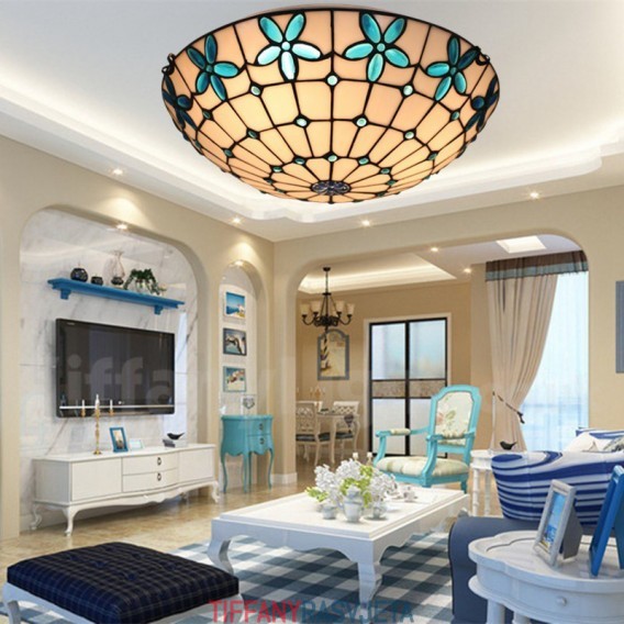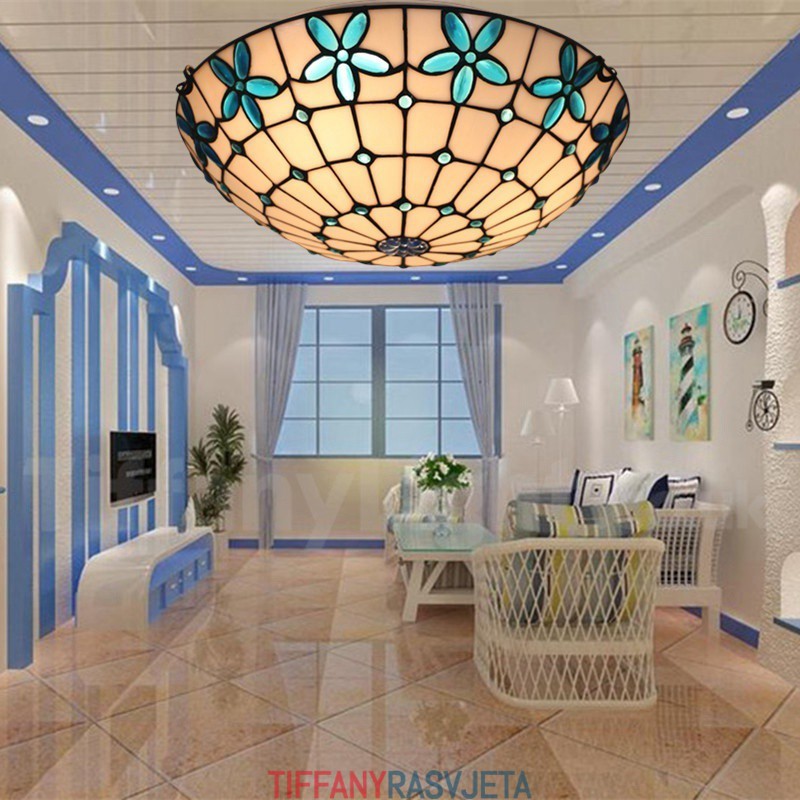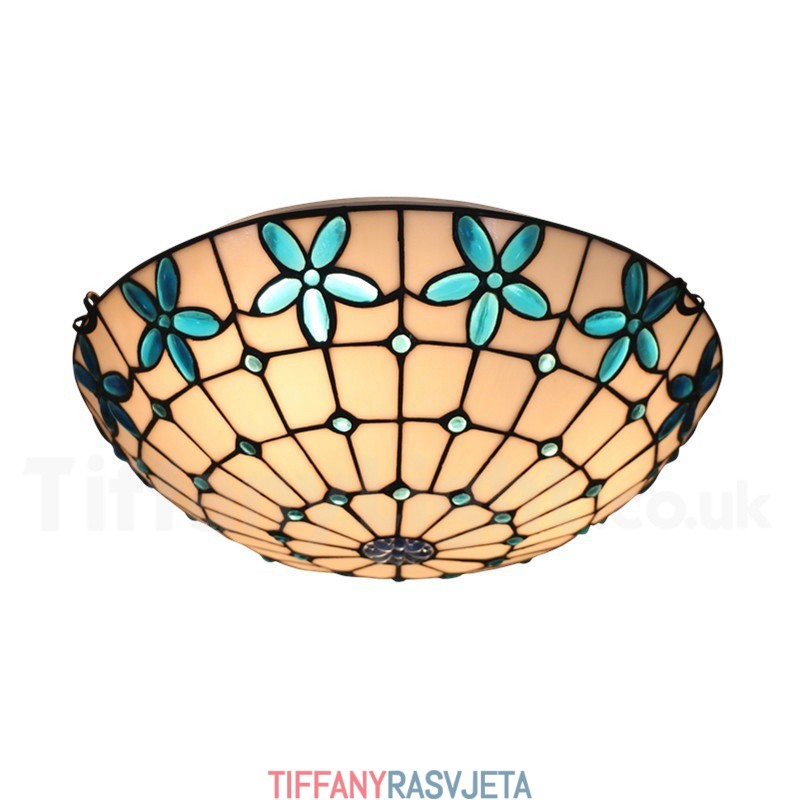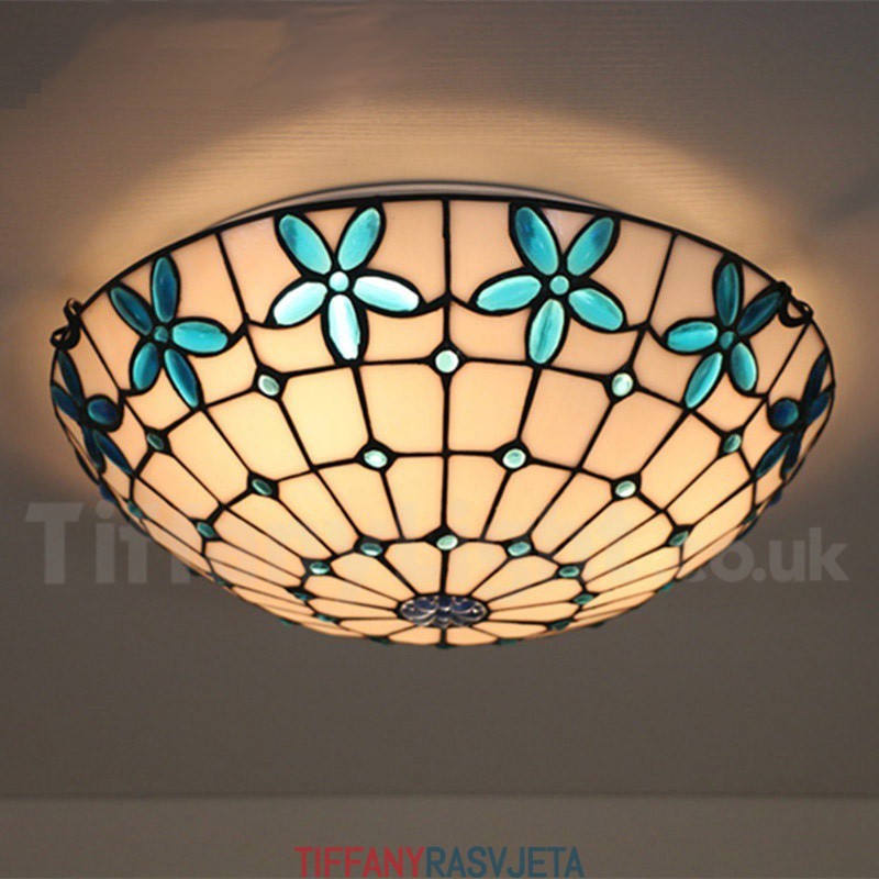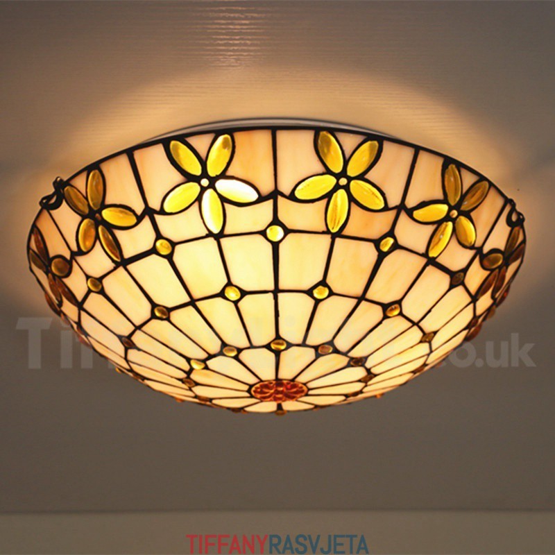Ručno izrađena vintage 16-inčna ugradbena Tiffany svjetiljka od vitraja