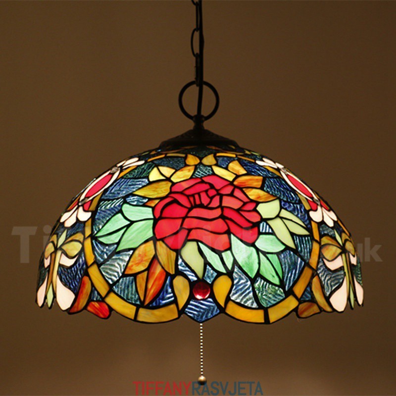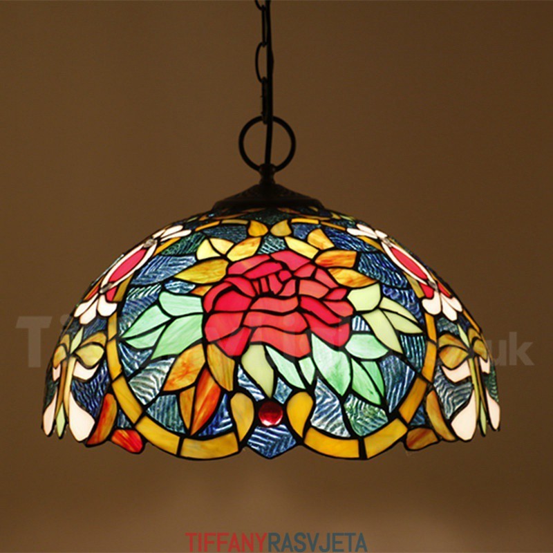 Ručno izrađena vintage 16-inčna viseća svjetiljka od vitraja Tiffany