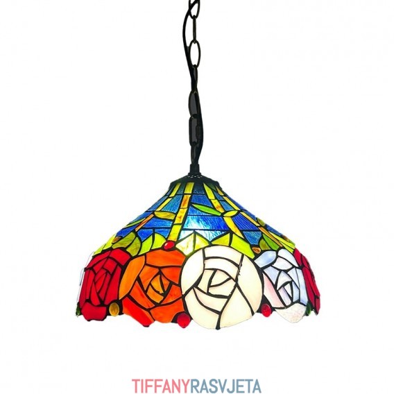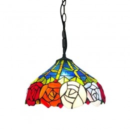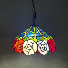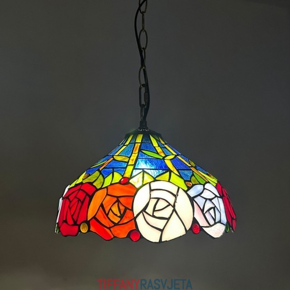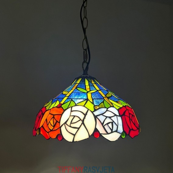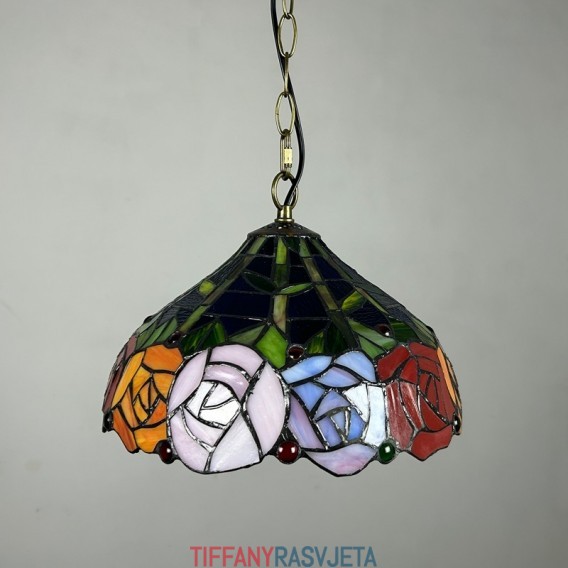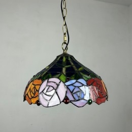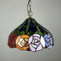 Ručno izrađena vintage ružasta abažurna lampa u stilu Tiffanyja s vitražom