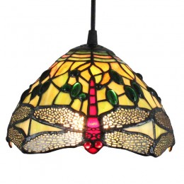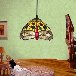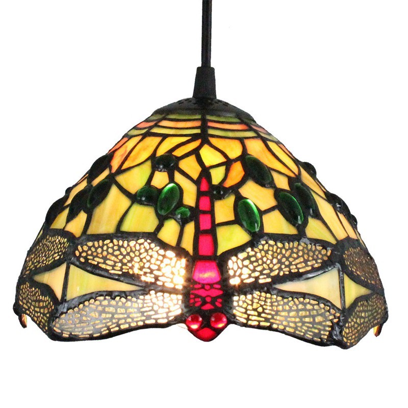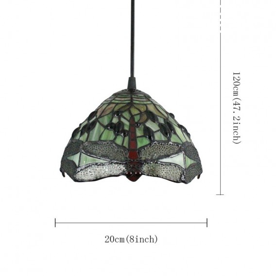 Ručno izrađena vintage pastoralna retro Tiffany viseća svjetiljka od 8 inča sa staklenim sjenilom s uzorkom vretenaca
