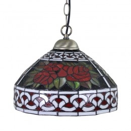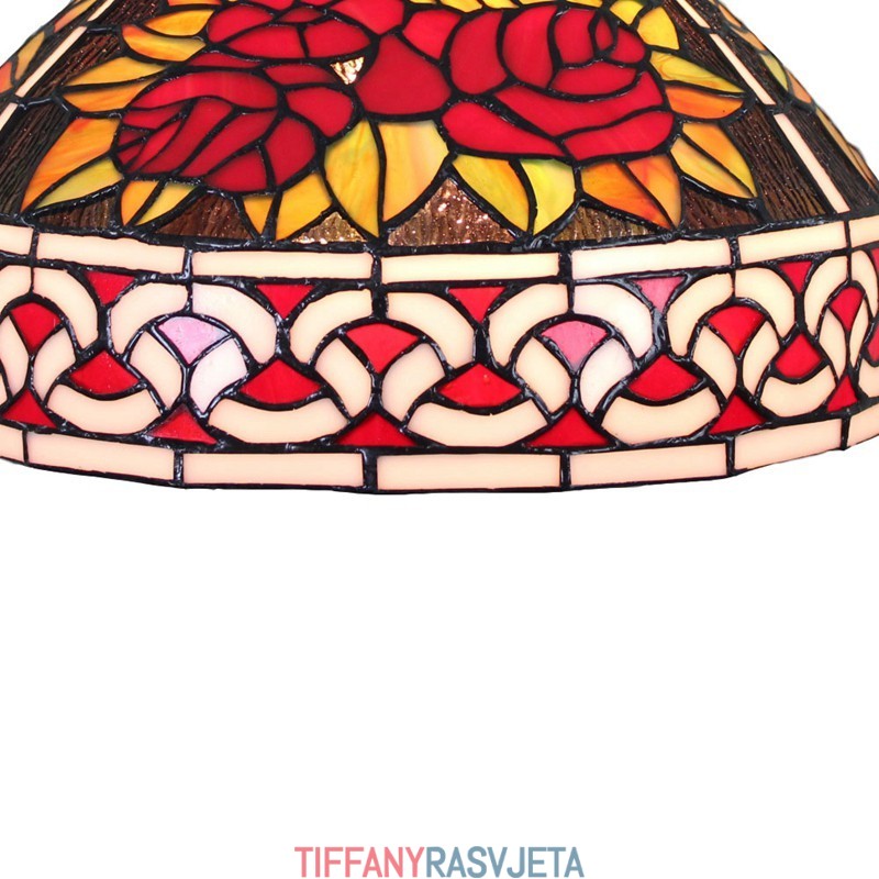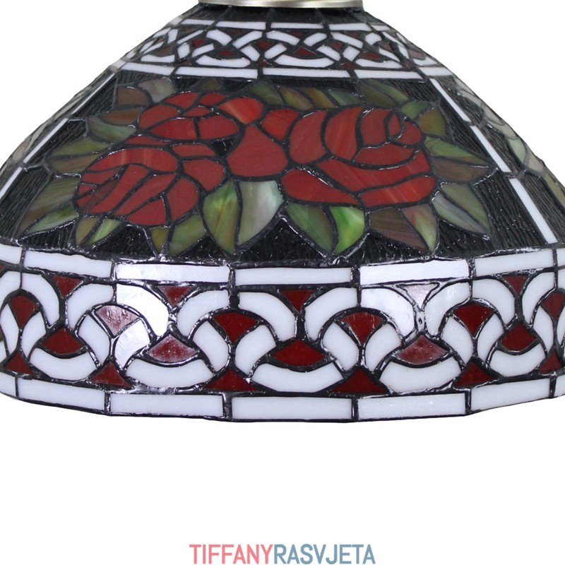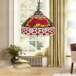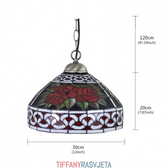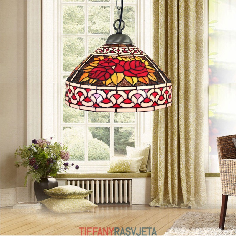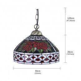 Ručno izrađena vintage pastoralna retro Tiffany viseća svjetiljka od 30 cm sa staklenim sjenilom s uzorkom crvene ruže
