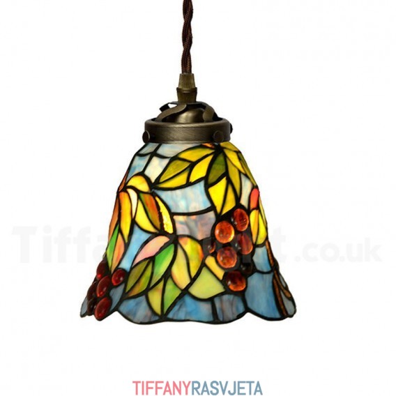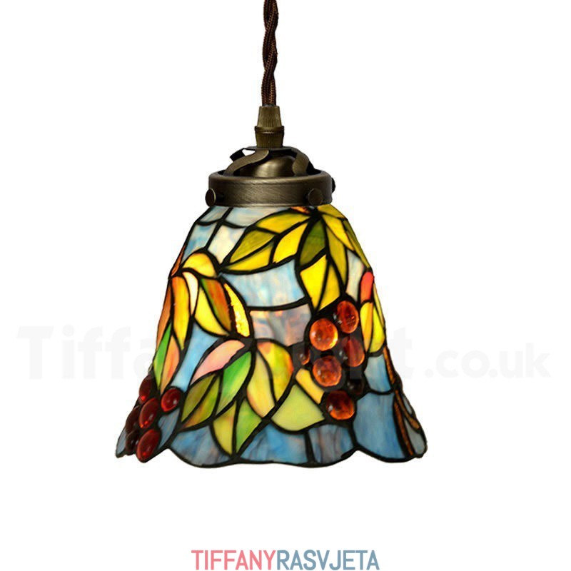 Ručno izrađena vintage retro viseća svjetiljka Tiffany s motivom grožđa, 7 inča, 1 žarulja