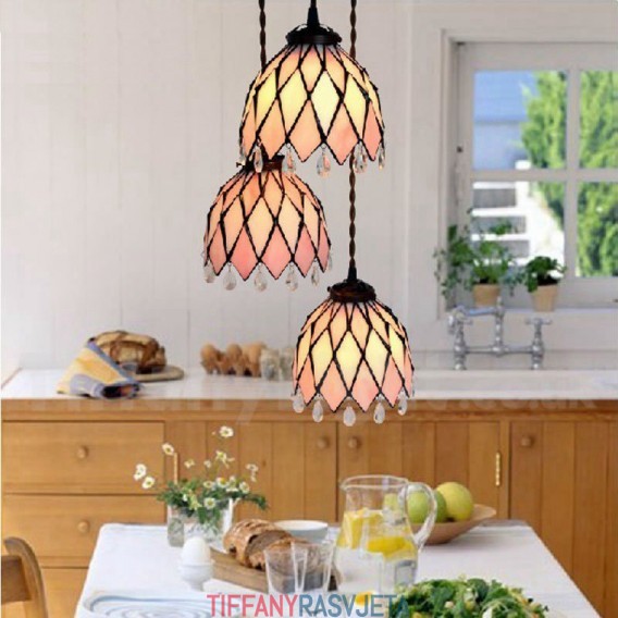 Ručno izrađena vintage Tiffany viseća svjetiljka od 7 inča s 3 žarulje