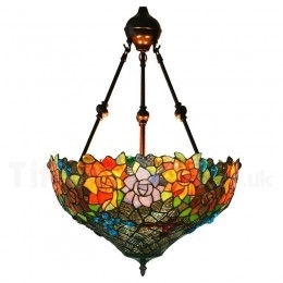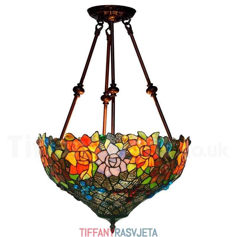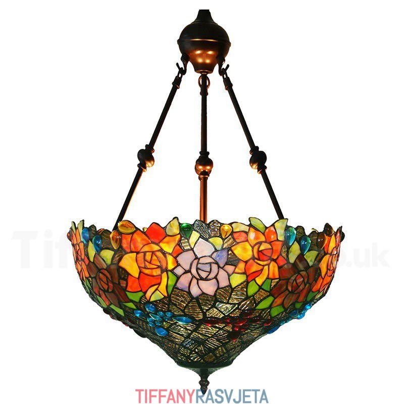 Ručno izrađena vintage viseća svjetiljka Tiffany s motivom leptira i ruže od 17 inča