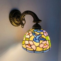 Ručno izrađena vintage zidna lampa u stilu Tiffanyja od 8 inča, pastoralna zidna svjetiljka od vitraja, ručno izrađena dekoracija, ugradbena svjetiljka, LED svjetlo