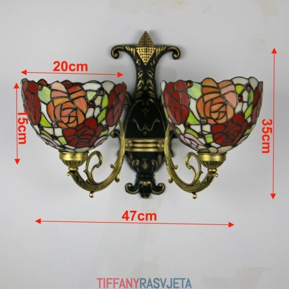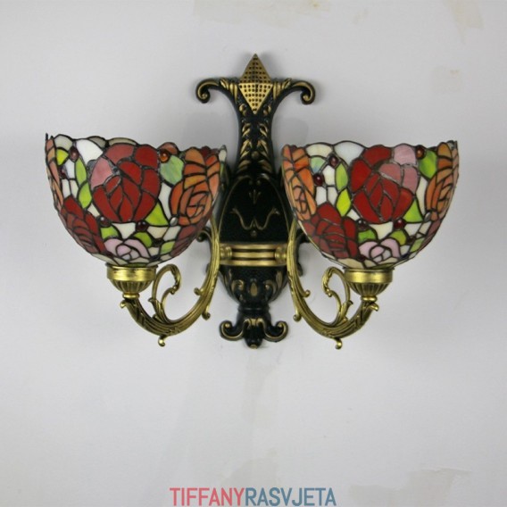 Ručno izrađena vintage ružasta abažurna lampa u Tiffany stilu, zidna svjetiljka od vitraja Tiffany