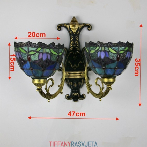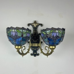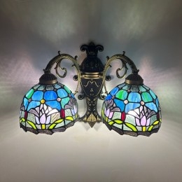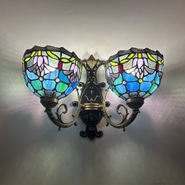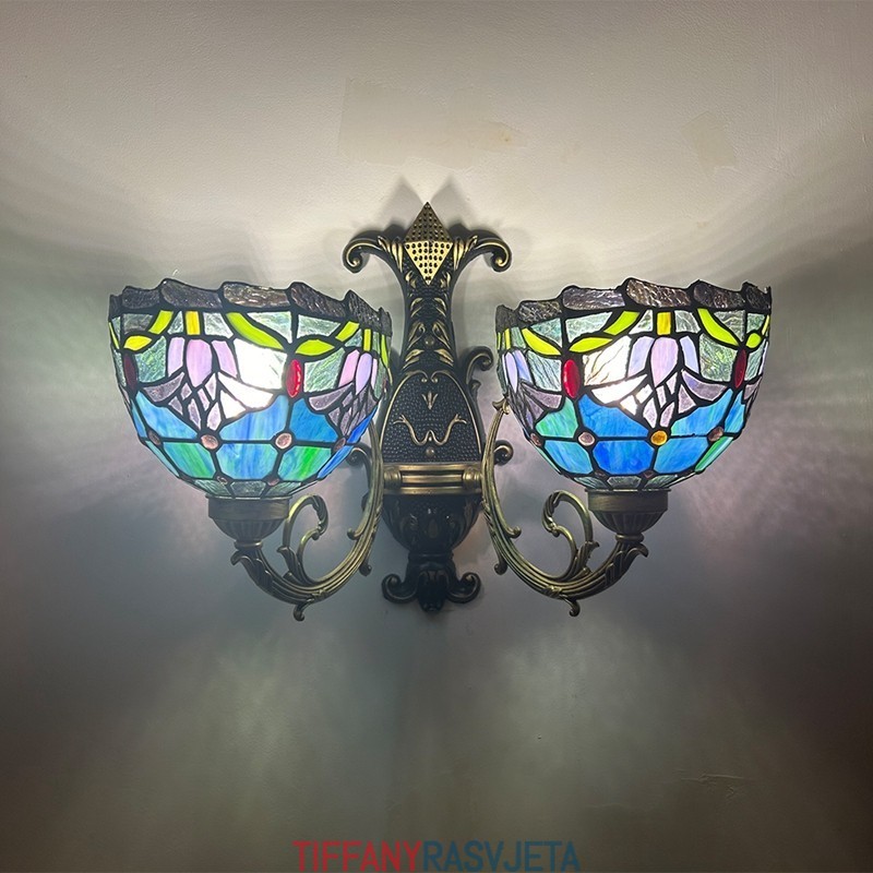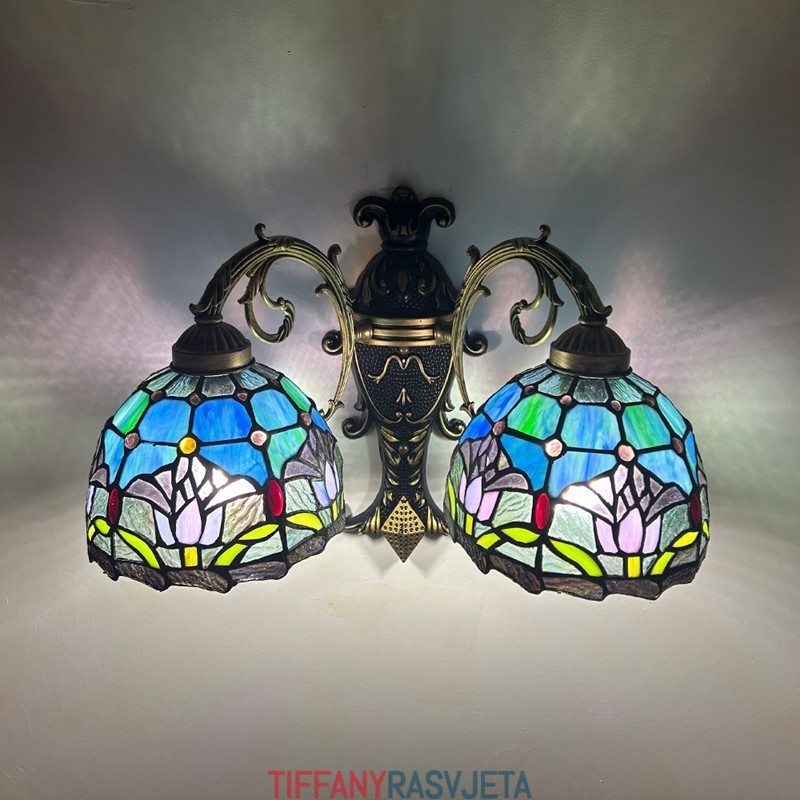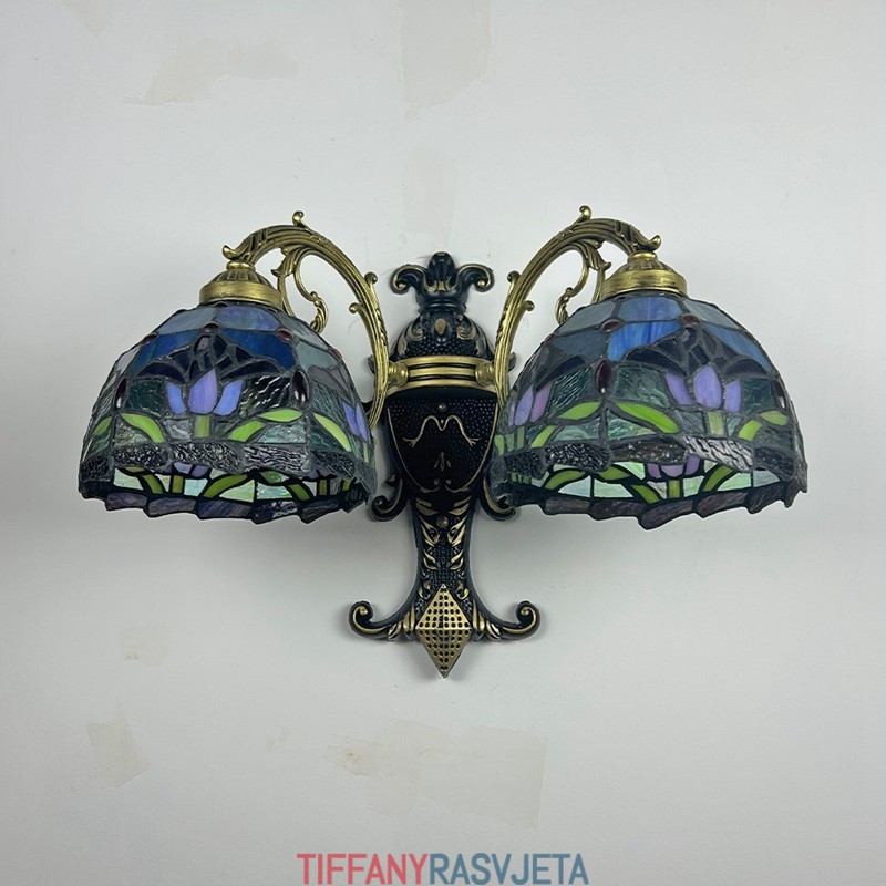 Ručno izrađena vintage zidna svjetiljka od vitraja s tulipanima u Tiffany stilu