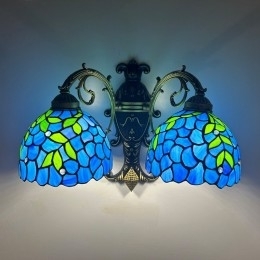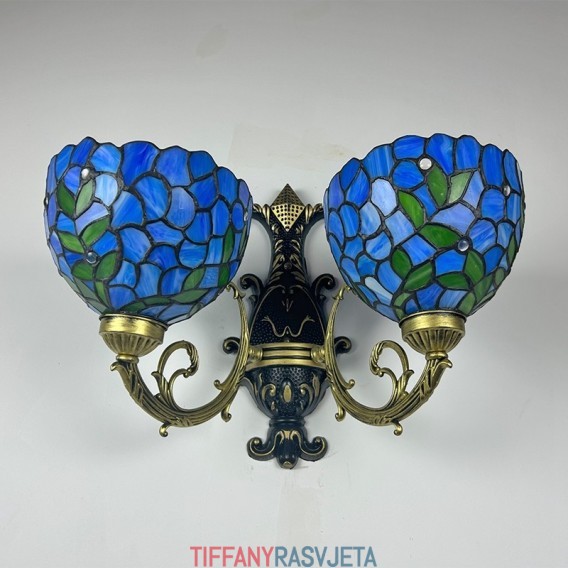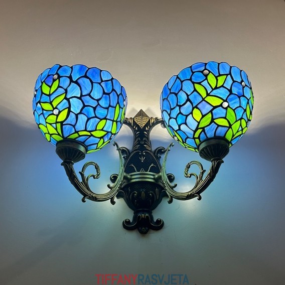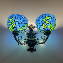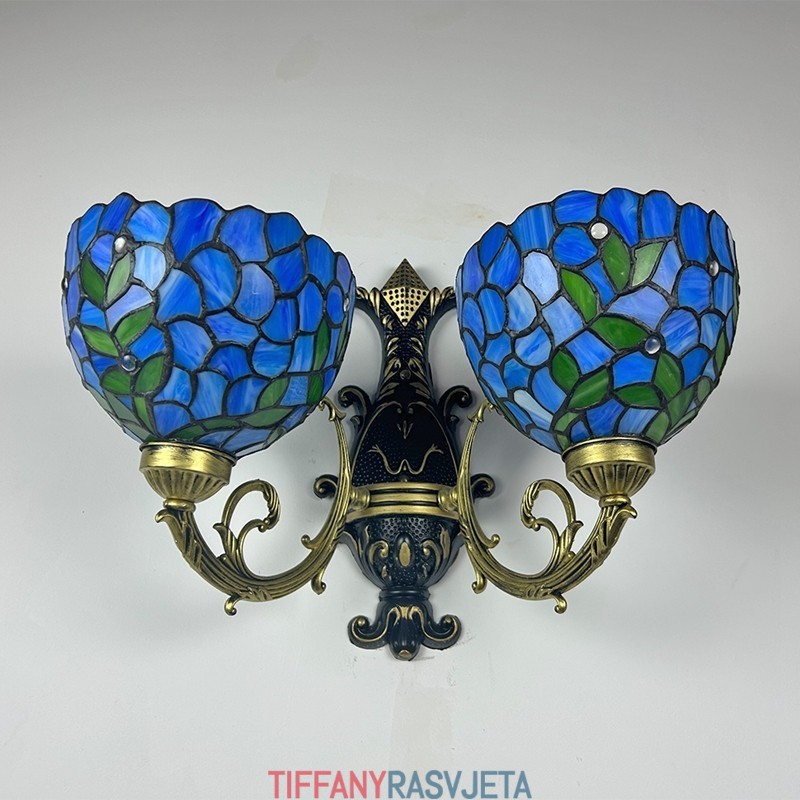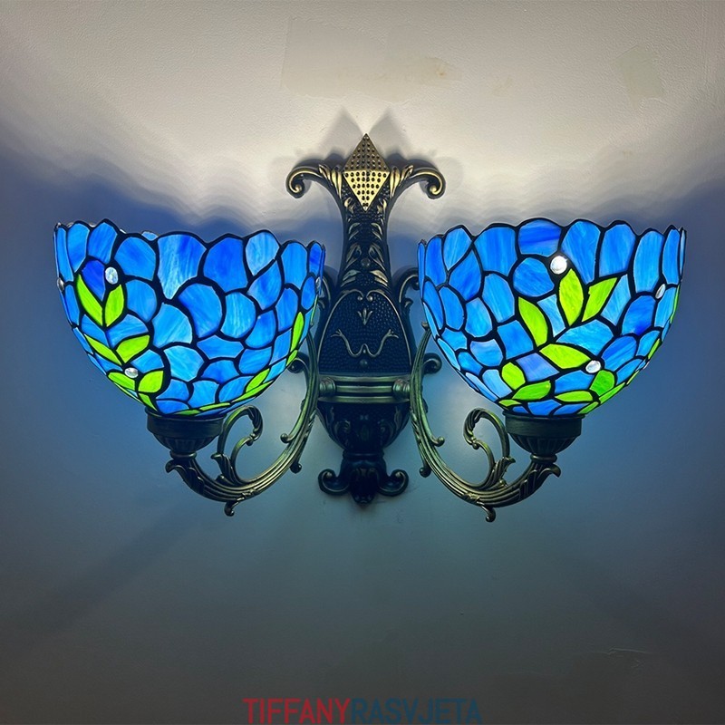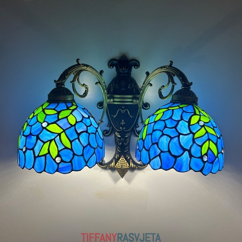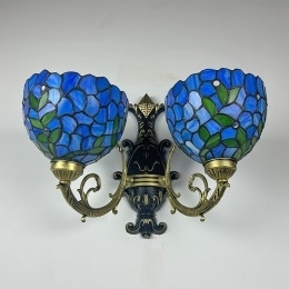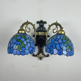 Ručno izrađena vintage zidna svjetiljka od vitraja s abažurom od glicinije u Tiffany stilu