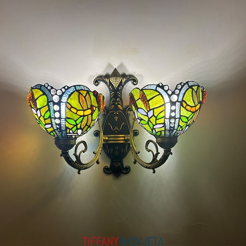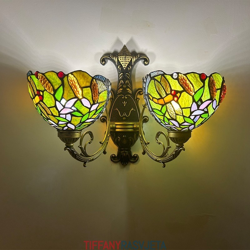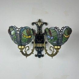 Ručno izrađena vintage zidna svjetiljka od vitraja u stilu Tiffanyja s abažurom za lampu Dragonfly