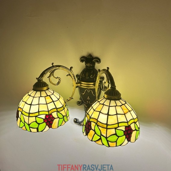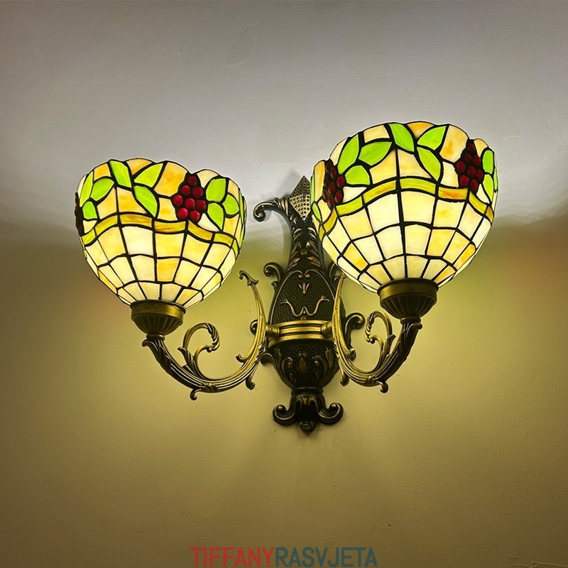 Ručno izrađena vintage zidna lampa s grožđem u stilu Tiffanyja, vitraža