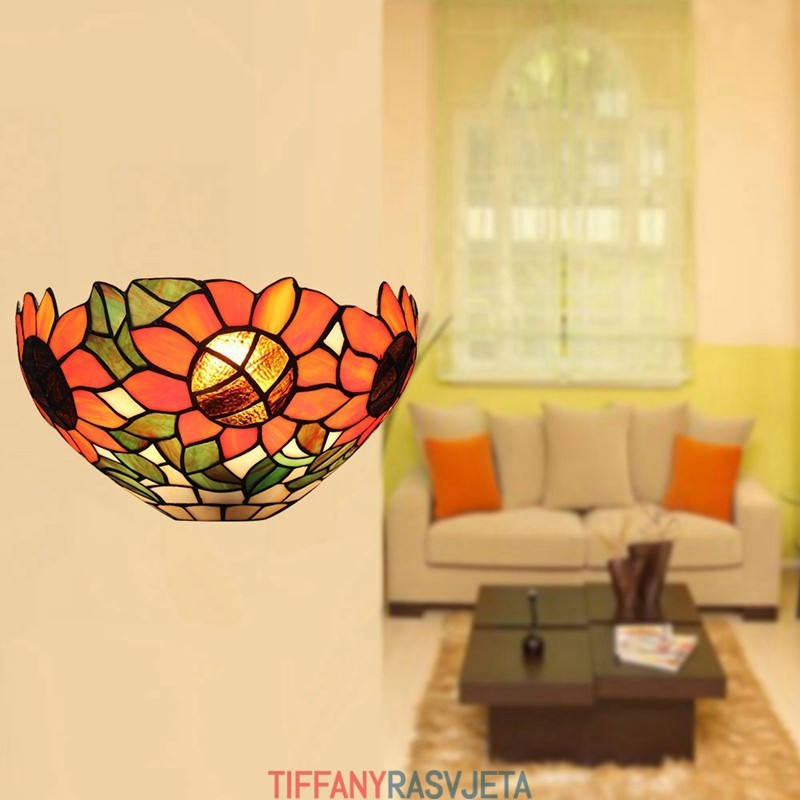 Ručno izrađena vintage pastoralna retro Tiffany zidna svjetiljka od 30 cm s uzorkom suncokreta